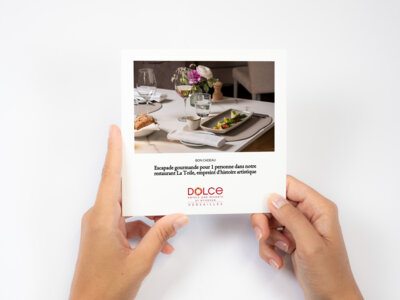 Valable du lundi au samedi. Afin de réserver votre expérience gourmande à la date qui vous conviendrait le mieux, nous vous remercions de contacter le service Réservations par téléphone au 01.73.95.60.00 ou par email reservations@dolcehotelversailles.com.